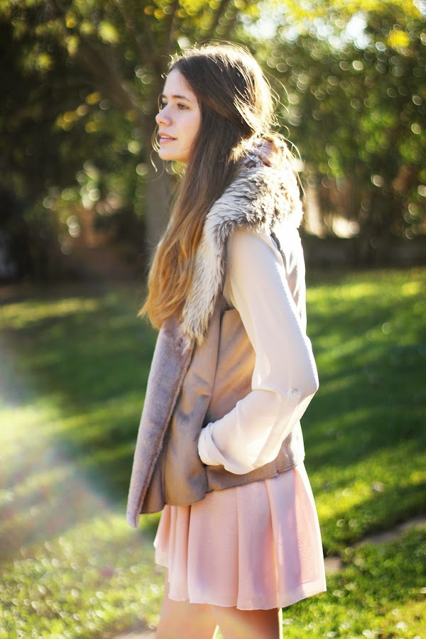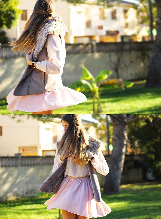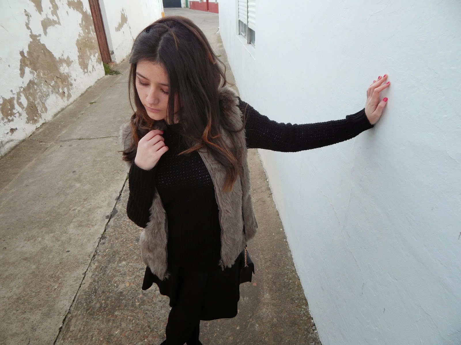 Hemos elegido como prenda un chaleco de pelo, que ahora está de tendencia total y al menos a mi me encanta. Lo hemos combinado de formas diferentes pero con bases parecidas. Las dos usamos una falda y el chaleco.