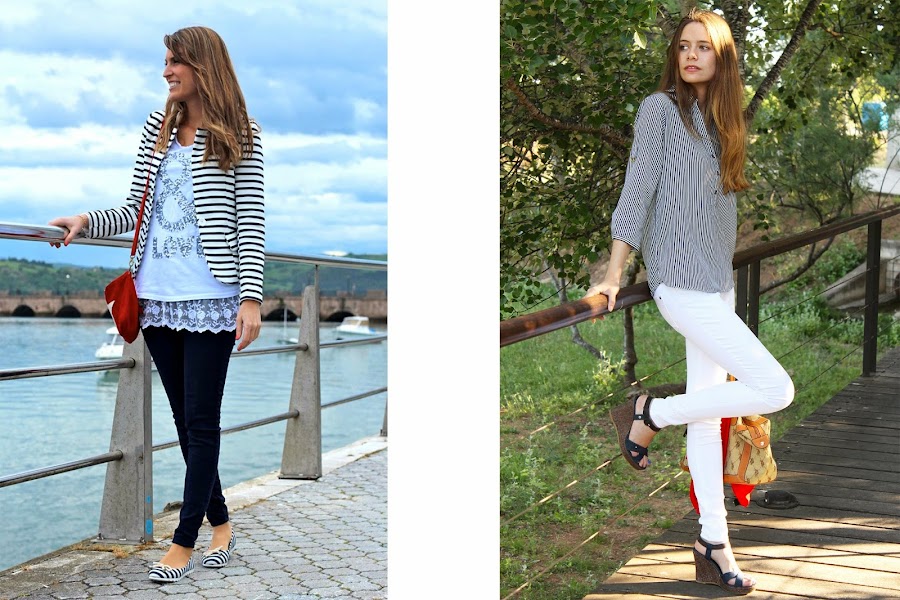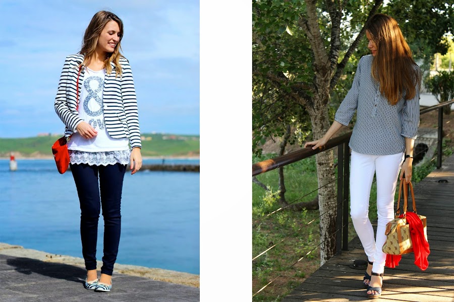Hemos apostado por dos looks navy que tanto vemos por la calle en esta época del año.
