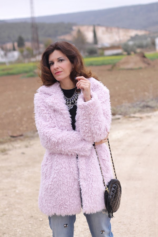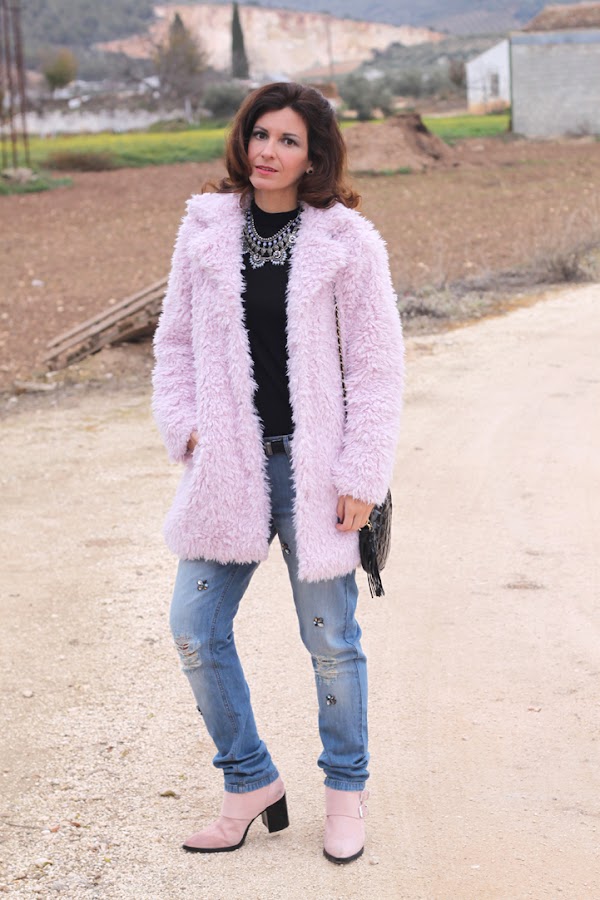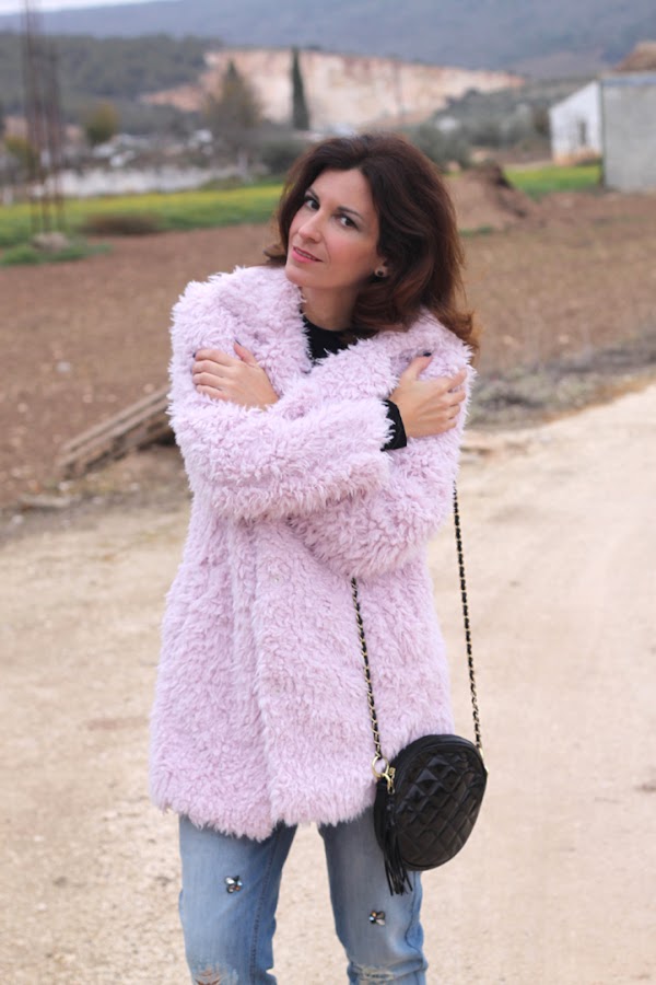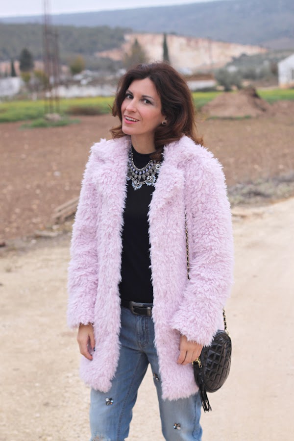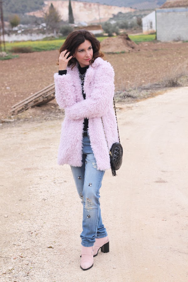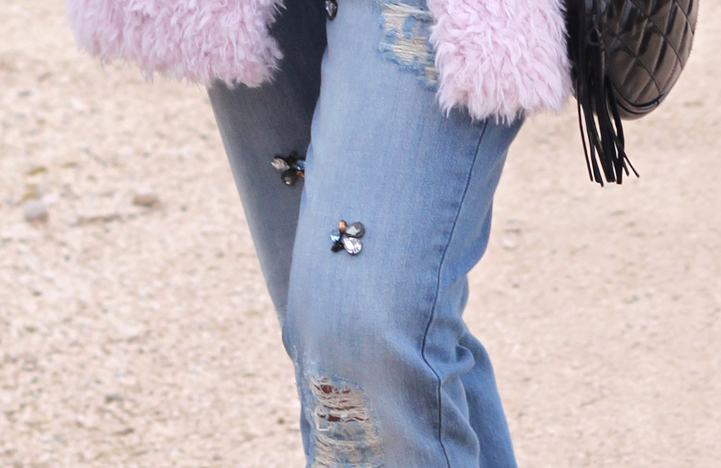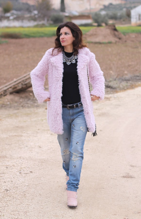 Hoy os enseño uno de los regalos de estas navidades, este abrigo de pelo rosa que me tiene enamorada ^_^, es super calentito y combinan genial con las botas que llevo y que ya vísteis en este look. En cuanto a los vaqueros rotos, son una de mis últimas adquisiciones, me encantó el detalle de las pedrerías así que no pude resistirme, ¿os gustan?