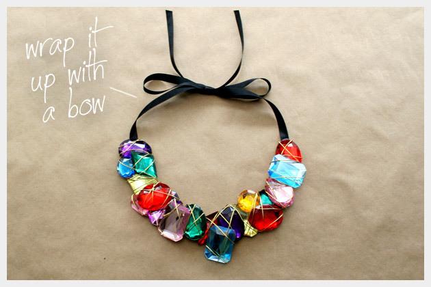 Veremos como hacer un lindo collar de piedras coloridas de gran tamaño.