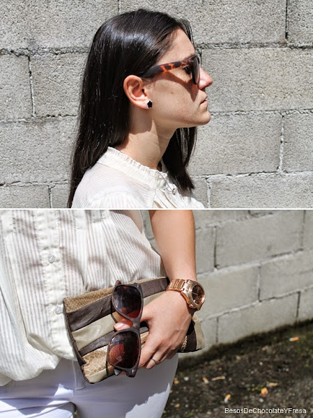 Combined it with white pantalone, an essential summer basics and accessories in nude as the clutch in shades of brown, blockbuster dancers XD and heart necklace Mucurundu blank.