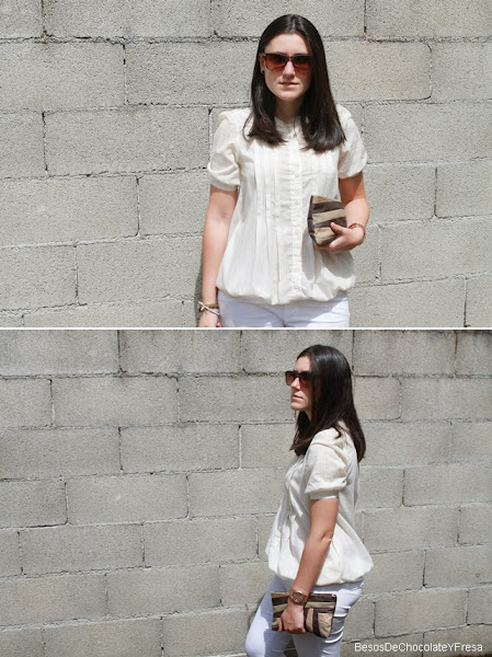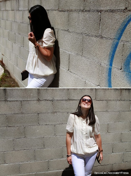 Hoy os muestro un look con esta camisa en color crema. A veces en el armario tenemos piezas que aunque les demos poco uso tienen un valor especial ya sea por el momento de la compra, alguien especial que te la regalo, por múltiples razones. Y esta camisa es una de ellas, super fresquita, con cuello redondo, abonbada y con bolsillos.