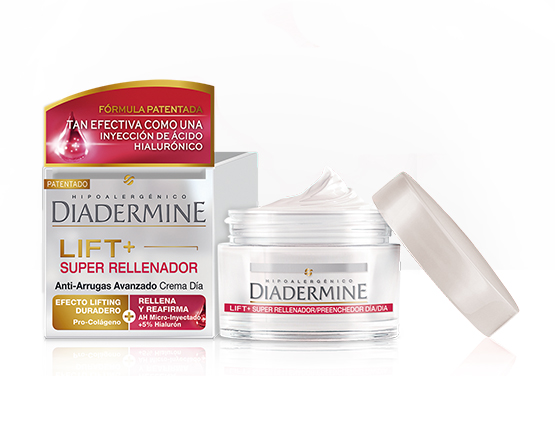 Diadermine lleva varios años investigando las propiedades de este ácido para crear una crema que tenga el mismo efecto que una inyección de ácido hialurónico. Con este fin, ha creado su línea Lift Súper Rellenador, con el ingrediente del hialurón, que ayuda a la piel a regenerarse y a mostrar un aspecto más saludable, rellenando las arrugas y las líneas de expresión.