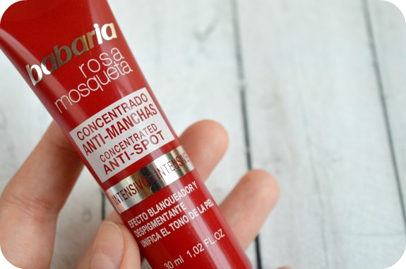 Y por fin, hace dos meses, vi el anuncio de esta crema de Babaria con rosa mosqueta que venia en dos pasos, con un concentrado anti-manchas intensivo efecto blanqueante y despigmentante que te lo has de poner por la noche y solo sobre las manchas, y luego el serum blanqueador también que te lo das por la mañana a modo de crema fácil y que lleva factor de protección 20 para protegerte durante el día.