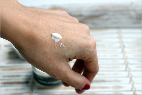 Como seguramente podréis apreciar en la imagen, la crema es bastante densa. A pesar de ello, se extiende muy bien y no deja sensación grasienta al aplicarla. De hecho, se absorbe muy deprisa, cosa que es un puntazo a favor para las que vamos con prisa como yo. No tiene ningún tipo de aroma, y tiene algo que me encanta: un aplicador tipo cucharilla. De este modo no tocaremos directamente la crema y evitaremos tanta contaminación del producto.