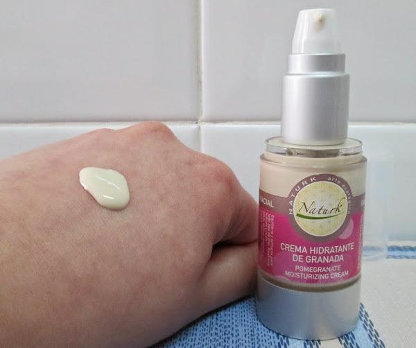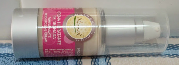 Y, hoy vengo a hablaros de la "Crema Facial de Granada - Natur-K". La cual se presenta en un envase de plástico fuerte y resistente, totalmente transparente, que nos permite ver la cantidad que queda de producto. Contiene 50 ml de cantidtad y tiene un dosificador "pompa" con apertura "airless".