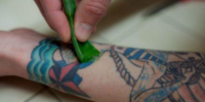3 gotas de aceite de almendras, ayuda a nutrir la piel, reduce las marcas y a evitar la resequedad de la piel donde se encuentra el nuevo tatuaje.