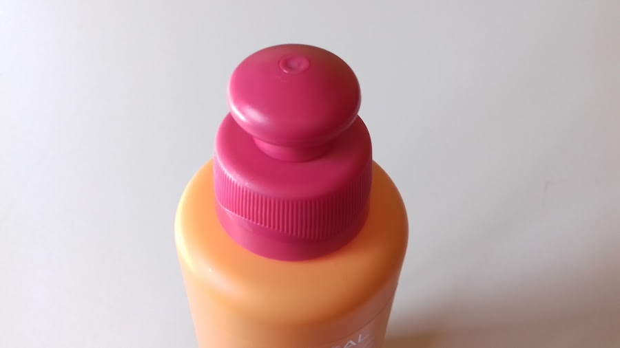 El envase está hecho de plástico en una preciosa combinación de naranja y rosa con tapón. Su aroma es de productos de peluquería y es de color blanco, textura crema. Lo que más me ha sorprendido es que se absorbe súper rápido y no apelmaza nada el cabello, ni deja residuo en las manos.