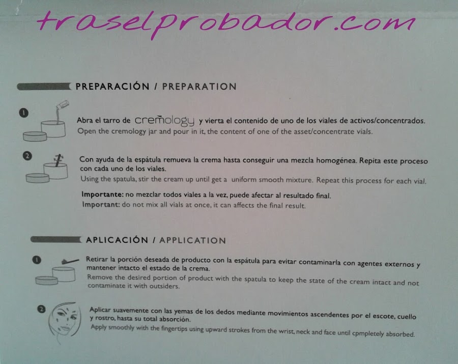 Es como cualquier otra crema que utilicéis. La chica nos recomendó que lo aplicásemos durante las primeras dos semanas solamente por la noche porque al principio nuestra piel puede enrojecerse y necesita algún tiempo para acostumbrarse al producto.