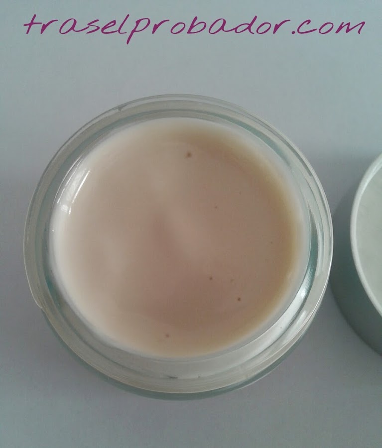 Es de color blanco y su textura y olor se asemejan a la famosa crema Nivea del tarro azul. Puede parecer algo densa en un principio pero que no os engañe la primera apariencia porque no es el resultado final.