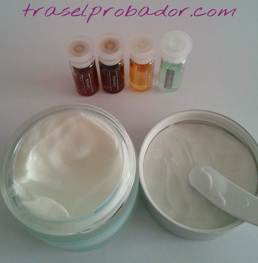 Todo está muy bien presentado en una caja donde se encuentran la crema base, los viales y una espátula para que realicemos la mezcla nosotr@s mismos.