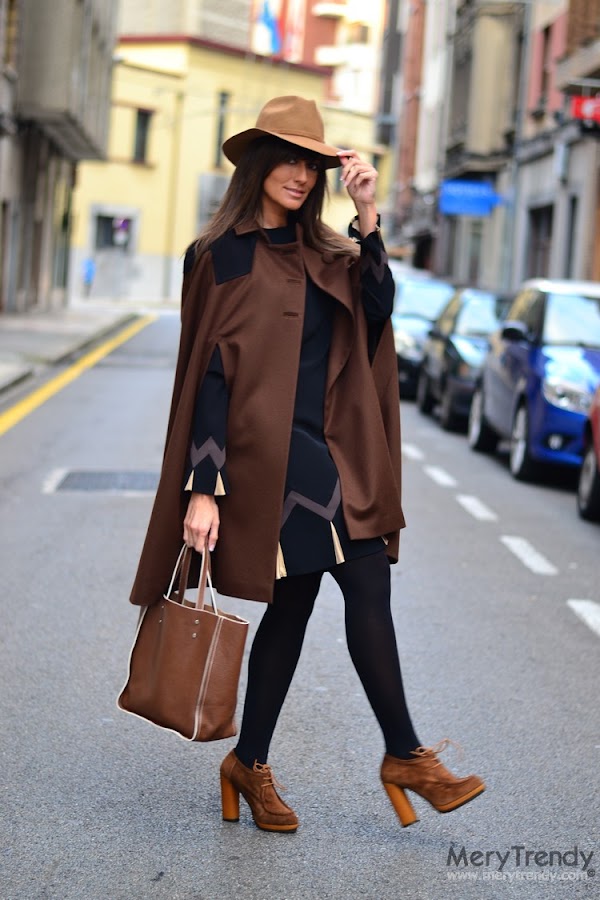 Pues bien, hoy me gustaría enseñaros como combiné uno de ellos (el de Cristina Piña) con una preciosa capa de paño de lana en chocolate y negro, también de la diseñadora, que, a mi juicio, le iba de lujo al vestido, para que veáis cómo en función de los complementos, simplemente cambiando los zapatos y el bolso, podemos crear dos outfits totalmente diferentes: uno de noche, más festivo y otro de día, más informal, gracias a la versatilidad del siempre socorrido vestido corto en negro, que no me cansaré de repetir que es un básico de fondo de armario que toda mujer debería tener en su ropero.