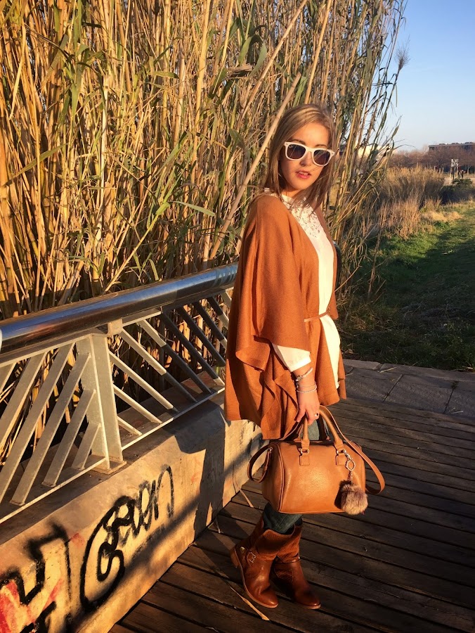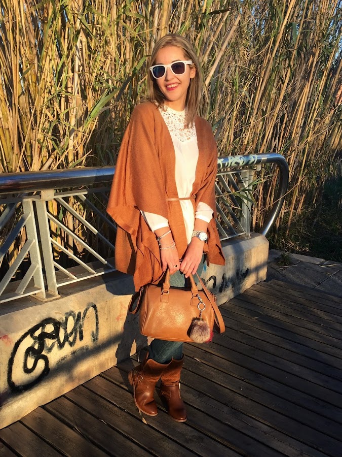 ¿Qué os parece el look de hoy? Gracias por vuestras visitas y comentarios. Que tengáis un fin de semana genial.Good night loves! Last post of the week and at the end, the weekend is here. What are you doing this weekend? Today I show you the outfit I wore last friday that I wore my new crochet shirt by first time. I wore it with jeans, a camel cape and my news boots with the same colour that the cape. A casual and female outfit.