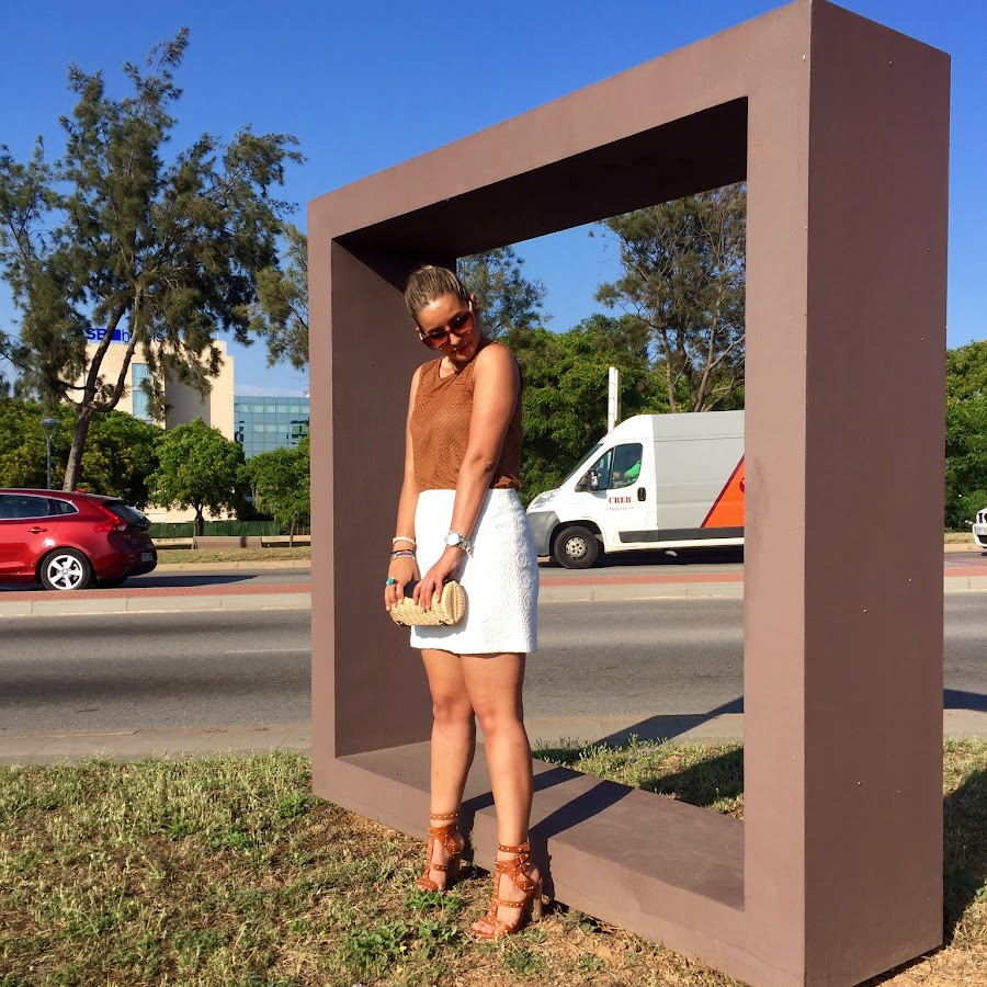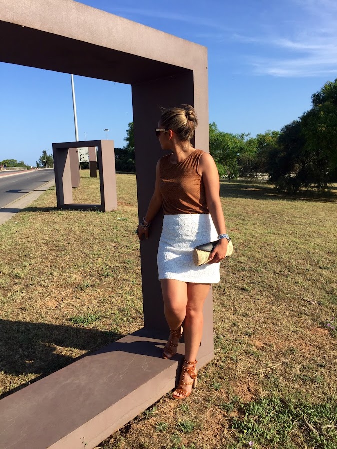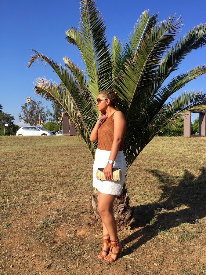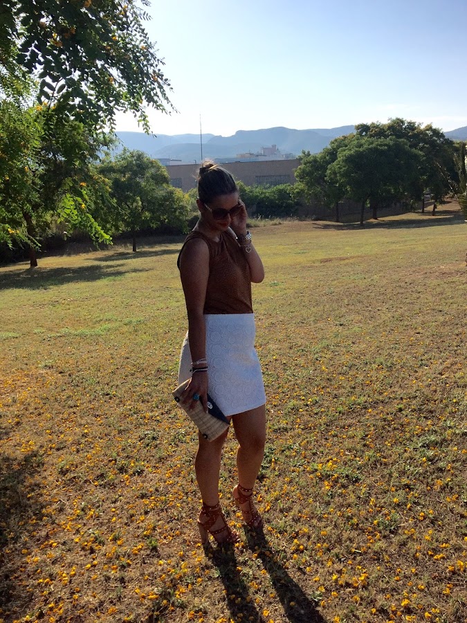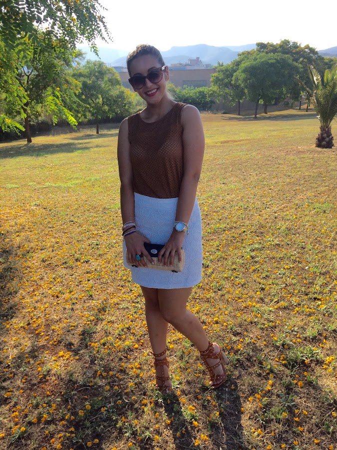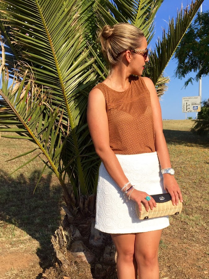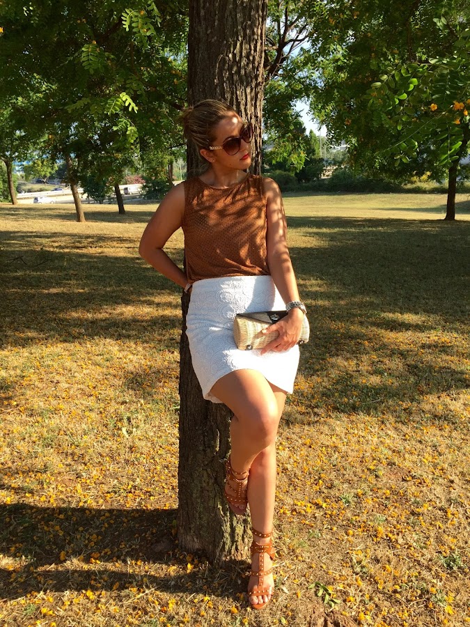 Good night sweeties? How did the weekend go? My weekend was very quiet and tomorrow I have an English exam, then I had to study. In the outfit of the day, I wore a white crochet skirt with a suede tee, my gladiator sandals and a wicker handbag. A chic outfit that it"s perfect to wear for a dinner during the summer.