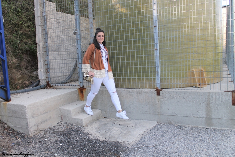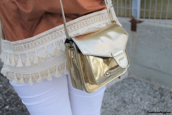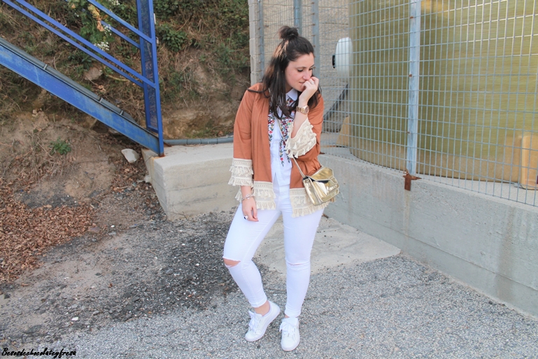 Decidí apostar por este look para una tarde de cañas que acabo en cena con la familia en la que completo el look con camisa blanca y bordados en la parte delantera que ya os enseñé en este otro post (aquí), jeans, sneakers blancas y bolso dorado para darle ese toque brillante.
