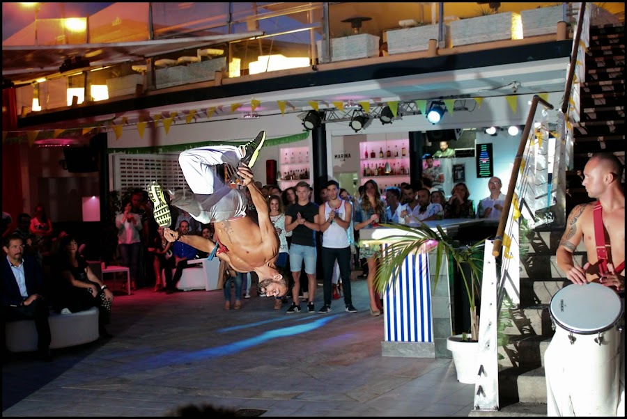 No podía faltar en esta fiesta tropical, la capoeira, el baile originario de Brasil.