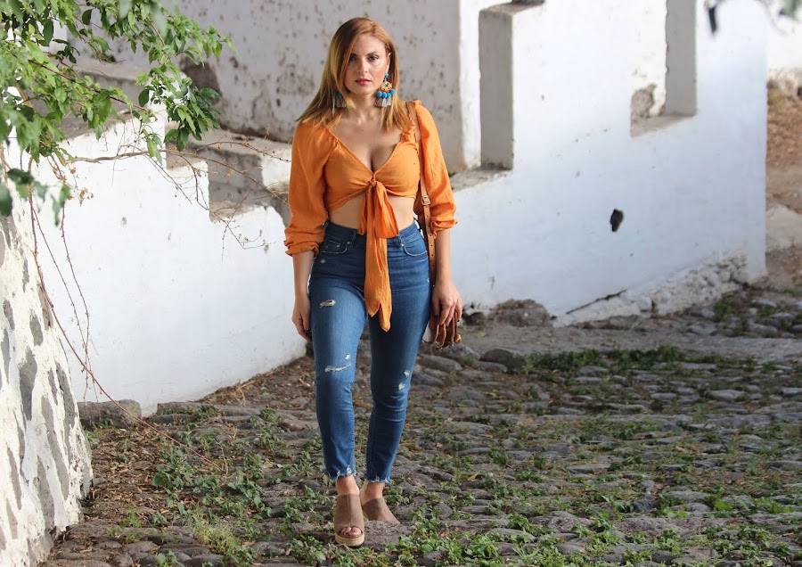 Una excelente opción para combinar tu crop top es con unos vaqueros de tiro alto. Solo hace falta echar la vista atrás para recordar esos looks que fueron icono de estilo en los años 90.