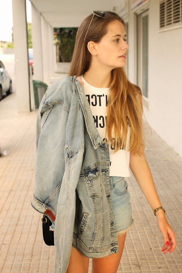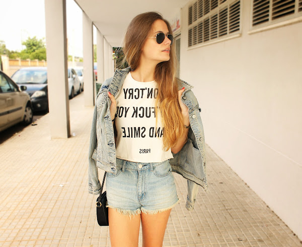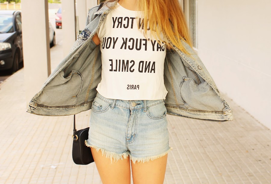En el look de hoy os enseño mi nuevo Crop-Top de Oasap. "Don"t cry, say" fuck you and smile".