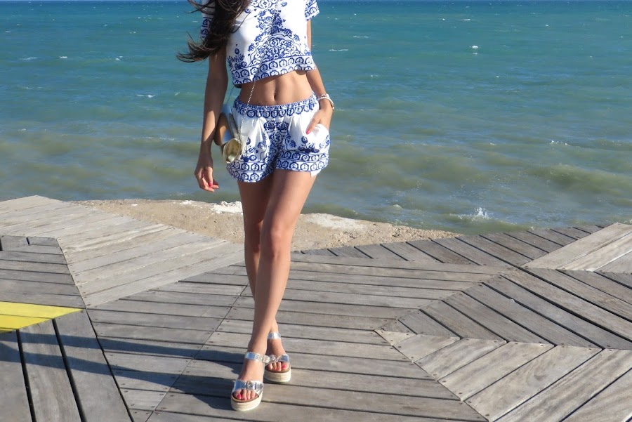 ¡Estaba deseando estrenar este conjuntito de crop top y shorts ZAFUL! Tiene un diseño de aire retro muy original.