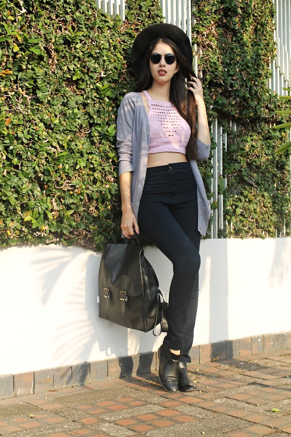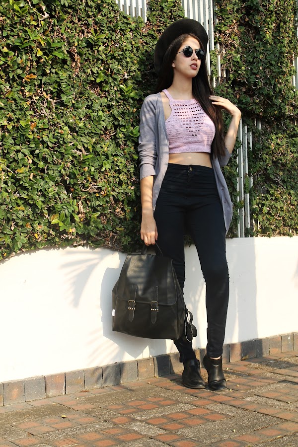 Top tejido:Carmesii / Cardigan: Zara / Jean: Wholesalebuying / Botines: Total Calzado / Mochila: Trebol / Lentes: Dressin / Sombrero: Dresslink