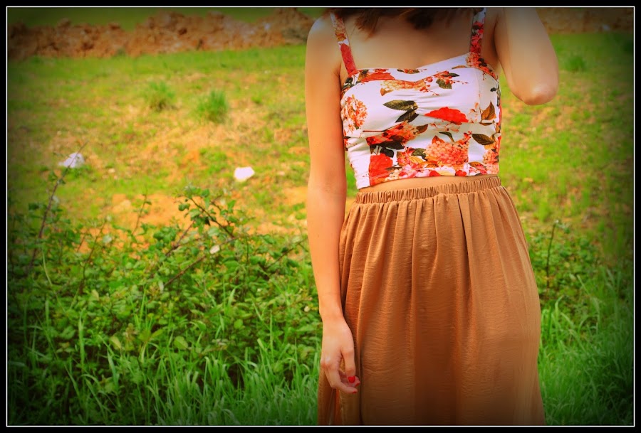 El look de hoy es de lo más veraniego, tenía muchas ganas de sacar este crop top del armario que me tiene completamente enamorada desde hace ya dos años, parece que esta tendencia no se decide a abandonarnos ¡y yo encantada!. Al ser tan extremadamente cortitos y apretados me gusta combinarlos con prendas inferiores de talle alto y un tanto anchas intentando lograr armonía. En vez me decanté por falda larga, a ver que os parece. Muchos besos y gracias por todas vuestras firmas, ¡¡nos encanta leeros!!