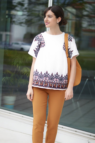 Top: Amaya Arzuaga / Pantalón: Adolfo Domínguez / Sandalias: Massimo Dutti/ Bolso: Zara Fotografías: Álex López