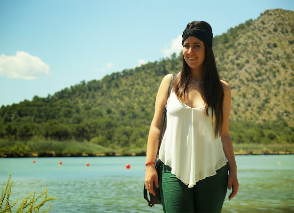 Happy friday to everybody! Today I will show you a look with green and white colours, these colours look great together, don"t you think? I bought this top some years ago, I really like it! I combined it with green trousers, you have seen them in other occasions and my favorite sandals. To finish, I added this DIY turbant, I love it! I hope you like this look. Don"t forget to give me your opinions!