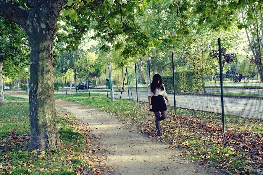 ¿Nuestra sorpresa? ¡Ya es oficialmente otoño! Sí, ya sé que ya lo era, pero en Salamanca ya podemos caminar pisando hojas secas, y hasta que no hay hojas secas para pisar no es oficialmente otoño. Otro signo del otoño fue pasar de las medias transparentes, las cuales he estado llevando hasta esta semana, a las de color.