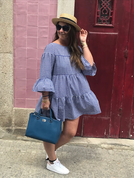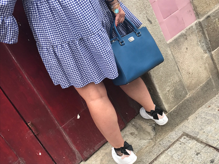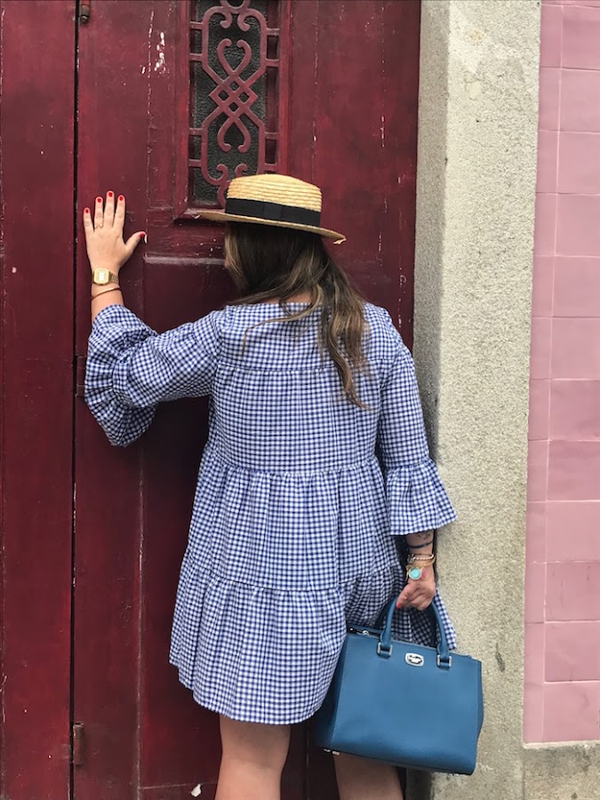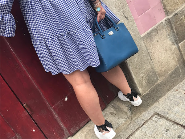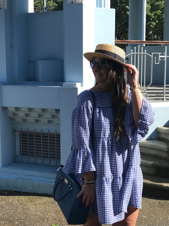 El look que os traigo hoy es otro de los que me encantan, de los que me hacen los ojitos chiribitas. Ya sabéis lo que os dije de lo que me flipan los cuadros vichy, y por eso el vestido de hoy, lleva este print, pero esta vez la combinación es con color azul marino y blanco.