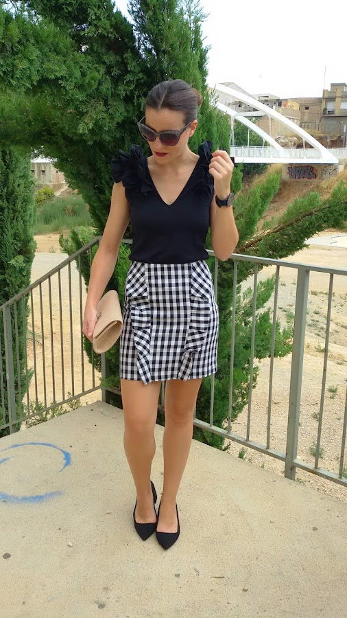 Este fin de semana he estado en Andorra de mini escapada y ayer no pude subiros el post con este conjunto de falda de cuadros de vichy de rebajas y camiseta con volantes . Una combinación para mi gusto ideal para las noches de copas y amigos en verano. Algo más arreglado de lo habitual pero siempre hay una noche especial donde poder ponértelo e ir más elegante .