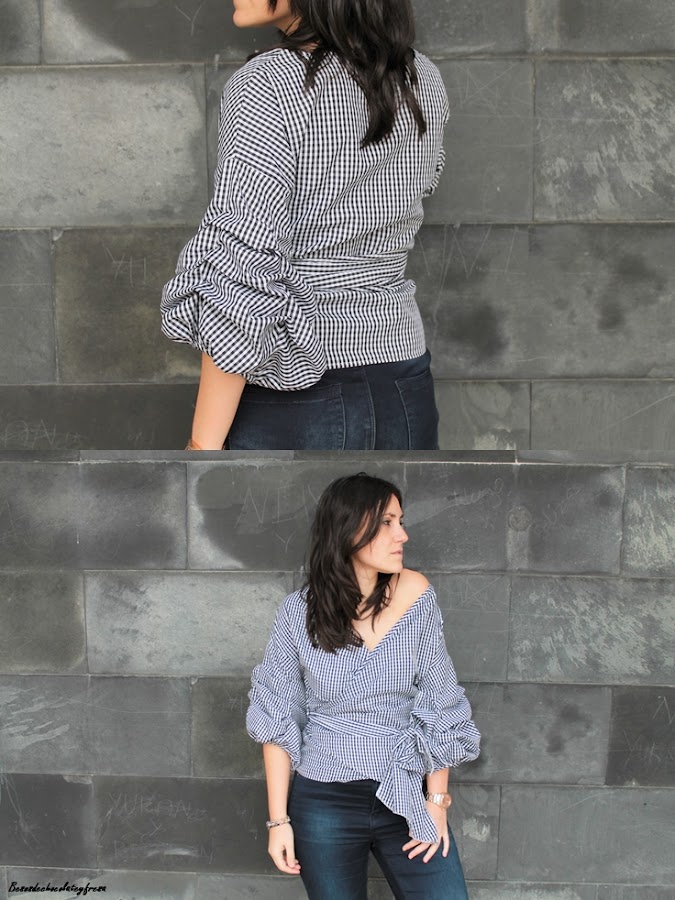 En Besosdechocolateyfresashop también nos sumamos a esta tendencia con dos blusas a cada cual más bonita. Blusa con mangas abullonadas y lazada en blanco y negro y escote cruzado. O bien blusa en rojo y blanco con volantes y off the shoulder.