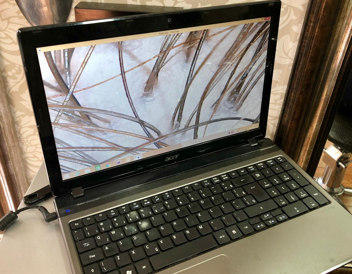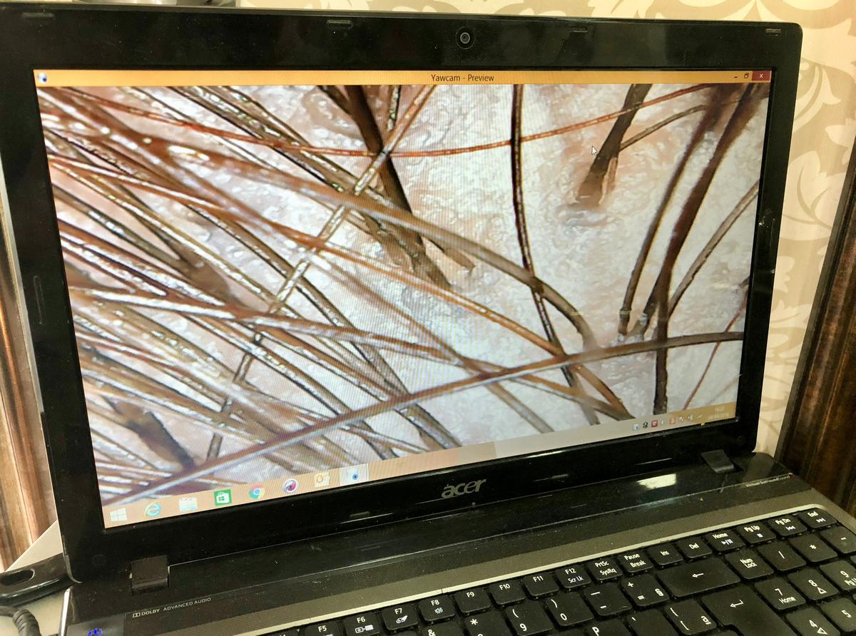 1. Diagnostico capilar con micro cámara para averiguar el estado de nuestro cabello desde la raíz.