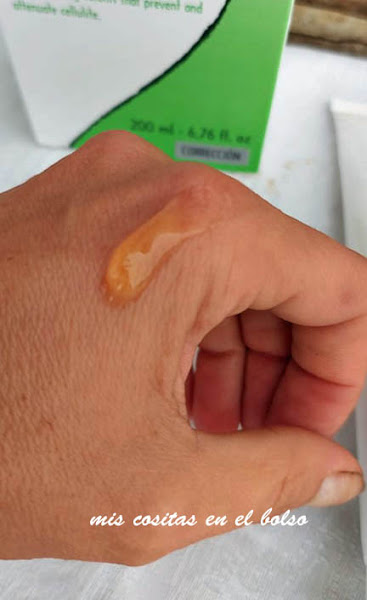 Su textura, como podéis ver es gel, penetra fácilmente en la piel, sin dejar sensaciones de frio ni de calor, y dejando un agradable aroma.