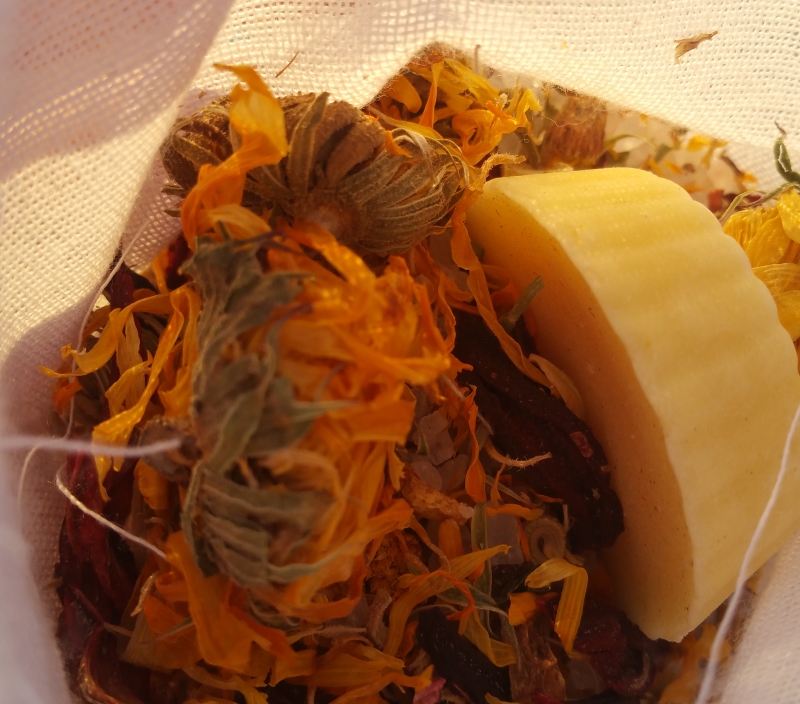 Bolsita de té de baño con velcro para abrir y cerrar la bolsita