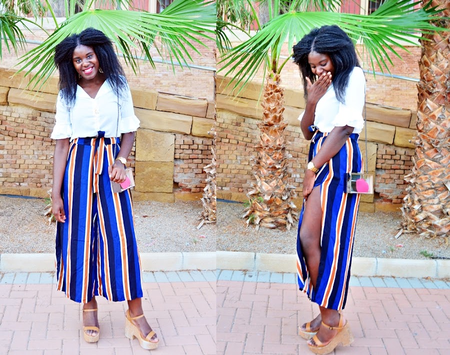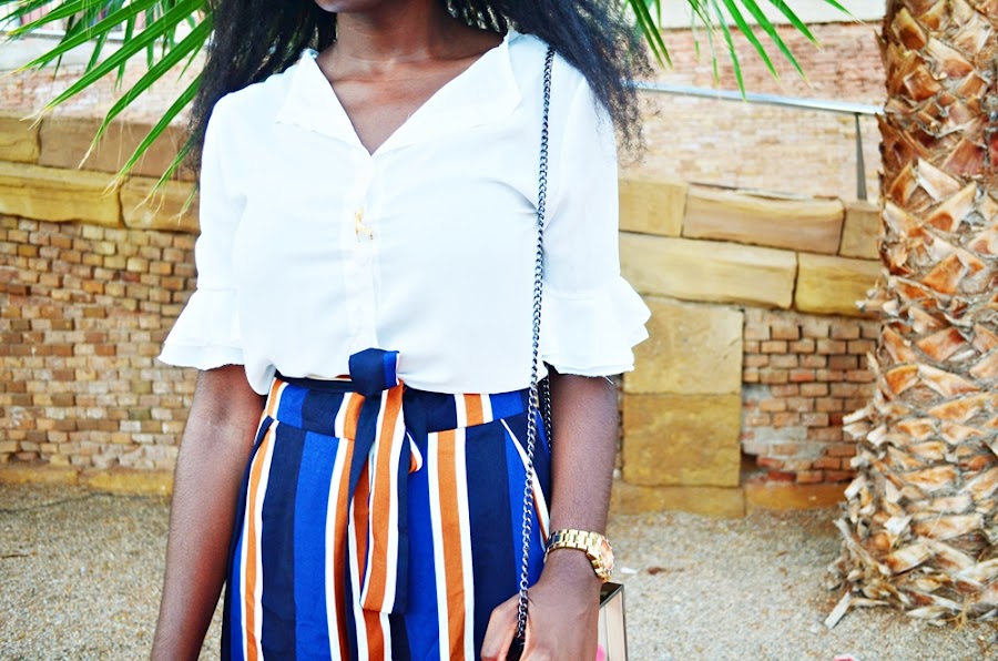 Este es el penúltimo post que tengo de mis vacaciones en Águilas, fue el outfit que utilicé por la noche el día de mi cumpleaños. Esta maravilla blusa de Sammydress, me encantó en cuanto vi esos vuelos (siento no poder dejaros el enlace, ya que se ha agotado) y este pantalón de Rosegal de doble apertura que me tiene loca. No dudé en ponerme mis cuñas de Zara, que tengo de hace ya mucho tiempo y mi querido clutch transparente.
