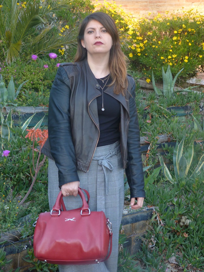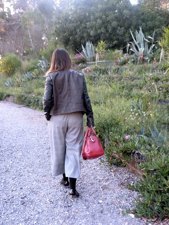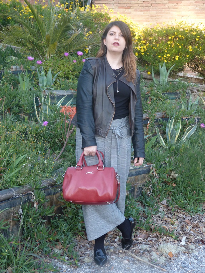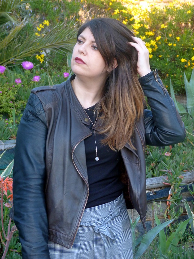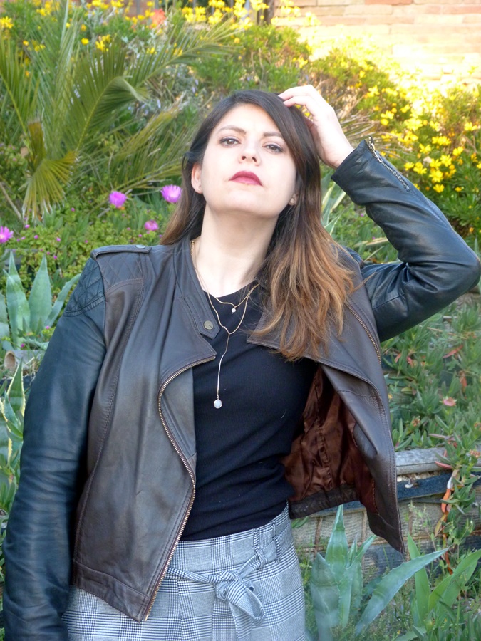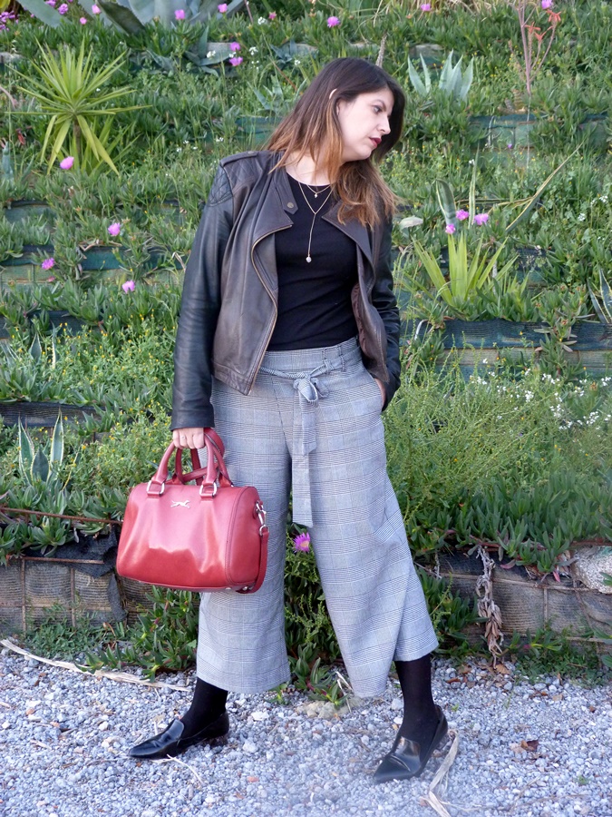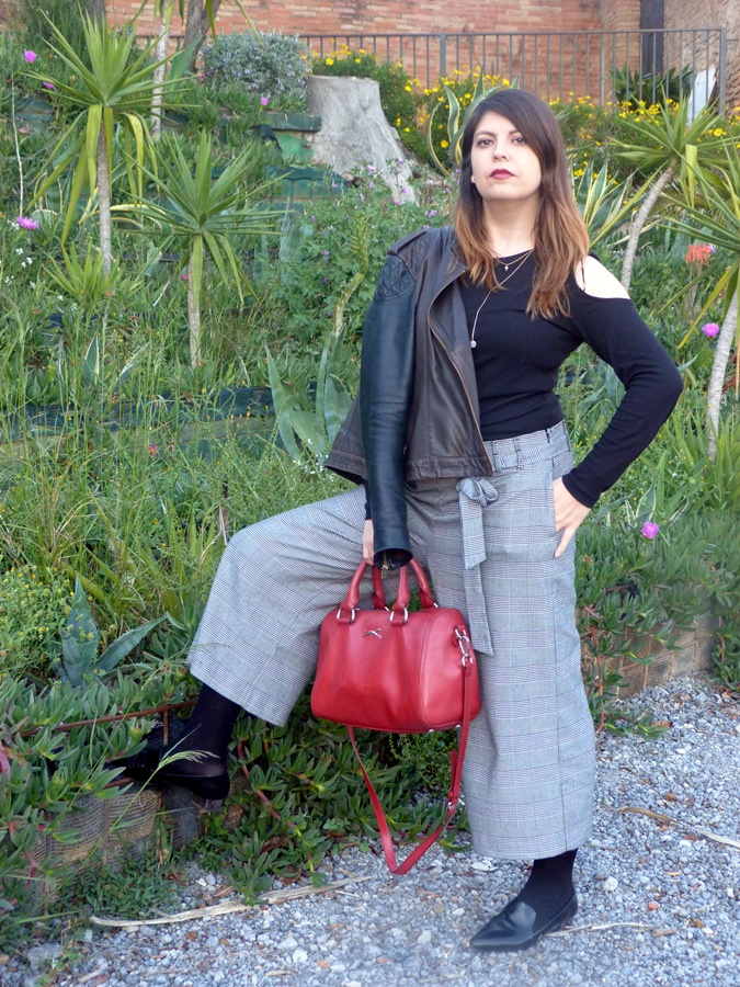 Hoy os traigo un look para éstos días tontos de frío, llovizna y mal tiempo, para mí una de mis imprescindibles para éstos días es la biker de cuero junto con el trench, nos sacan de más de un apuro, hay que tener una prenda de cada en nuestro fondo de armario ;) en cuanto al look de hoy, combino un pantalón culotte que también es uno de mis imprescindibles, totalmente diferente a cualquier pantalón y super cómodo, os animo a haceros con uno si es que no tenéis, ya se que es una prenda que o amas o odias, pero creo que se merece una oportunidad, tanto con calzado plano para chicas no muy bajitas como con tacón o plataforma para las de menos estatura, lo he combinado con un top negro de los llamados hombros al aire, que me encanta, espero que os guste ;)