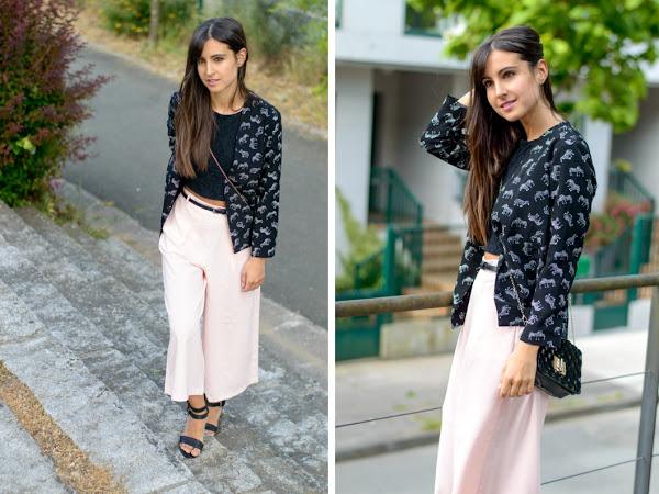Culotte y brazalete: Forever 21 / Top: Lefties / Chaqueta: Asos / Sandalias: JustFab / Bolso: Tienda local