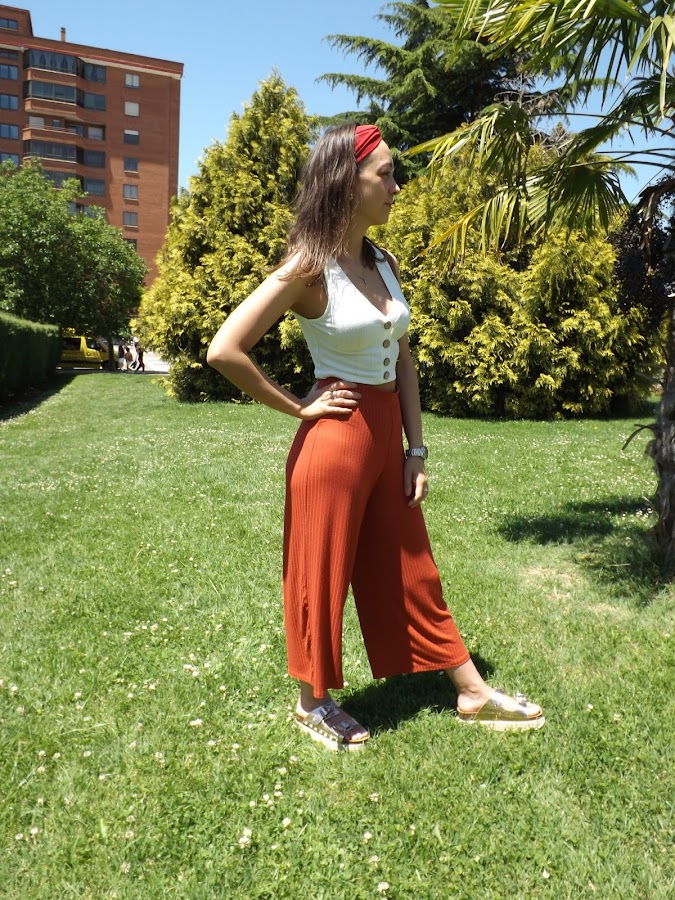 Tenía muchas ganas de tener unos culottes en mi armario y cuando vi estos en Stradivarius no me pude resistir. Los he combinado con este top de la misma tienda y mis sandalias nuevas que no paro de ponérmelas, no pueden ser más cómodas.