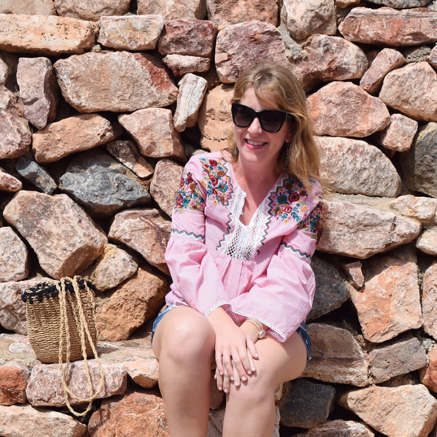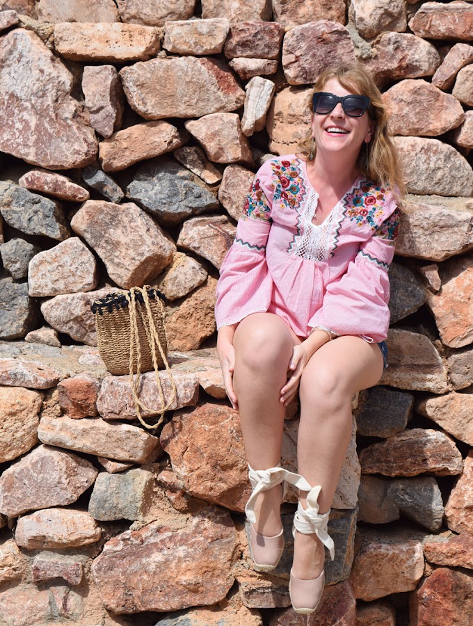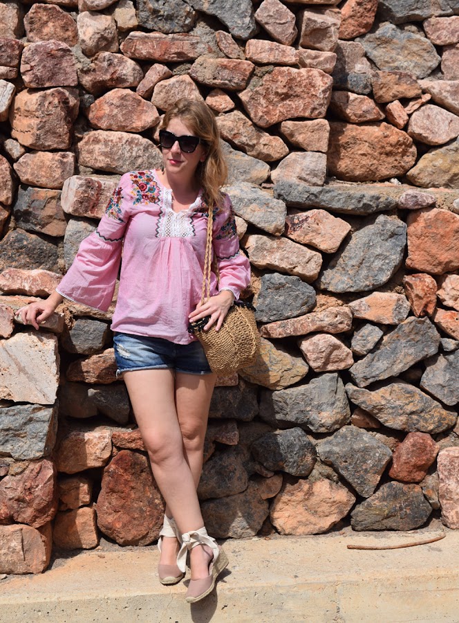 En tonos azules y rosas, eso si, mis colores favoritos del verano. Y con las cuñas más cómodas que hay ahora mismo en mi armario.