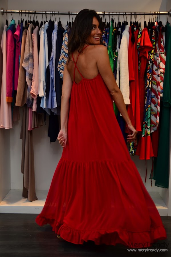 Maxi Vestido de Tirantes Rojo - Barbados Collection / Aquí.