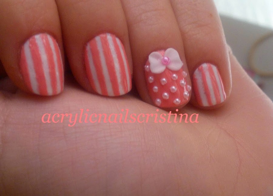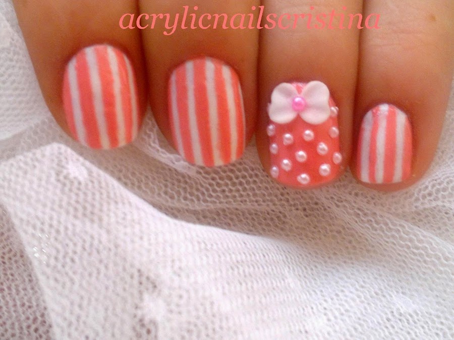 Y finalmente, una capa de topcoat el lazito y unas perlas blancas a juego con el diseño.