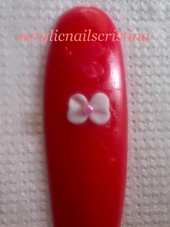 He esculpido un lazo en 3D con acrílico blanco y le he enganchado una perla en rosa.