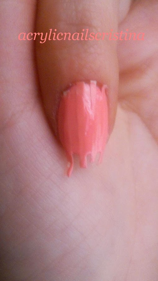 Después he recortado unas tiritas finas y las he enganchado en la uña.