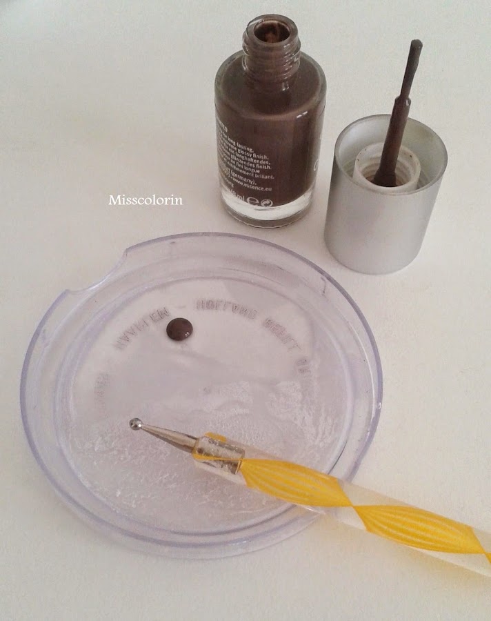 - pincel de nail art o puntero (si no tienes, un palillo de los dientes te servirá perfectamente); yo he escogido un puntero de doble punta con diferente grosor
