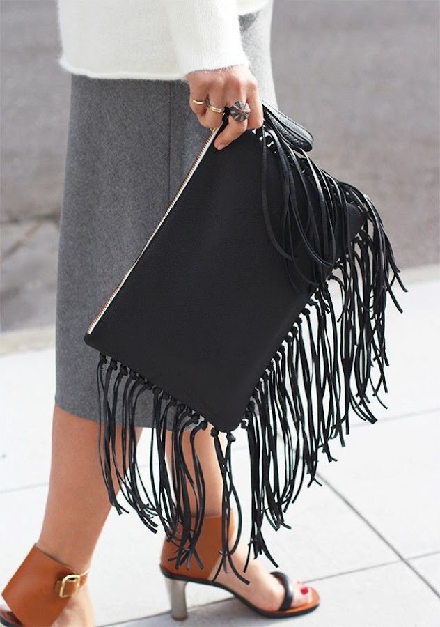 Los flecos se llevan en todos los complementos y prendas y este bolso