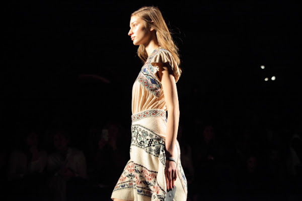 Como en ocasiones anteriores asistí invitada por Aldomartins para poder presenciar su colección Vent del Nord. Una colección preciosa inspirada en los tejidos tribales de los indios americanos, con referencias de antigüos uniformes militares y con elementos del vestir de la vieja Europa. Todo llevado hacia una atmosfera de estilo victoriano con aires nórdicos. Os tengo que decir que me encantó, creo que hasta la fecha es la colección que más me ha gustado tanto por los diseños como por las texturas y los colores.