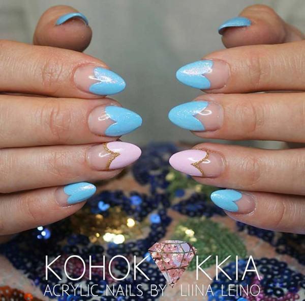 Los corazones en estas decoraciones son el detalle romántico, que no solo te van a enamorar a ti, y los espacios desnudos de la uñas añaden delicadeza. Recuerda que puedes utilizar estos u otros colores según las tonalidades que decidas utilizar.