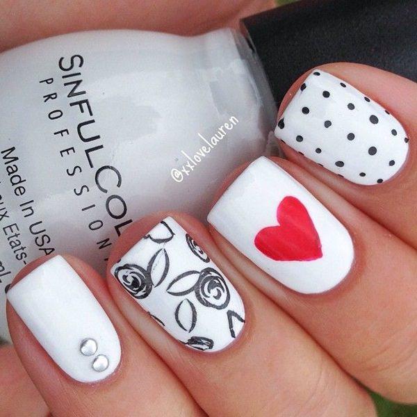 Estas decoraciones en rojo y blanco con corazones son fáciles de hacer pero a la ves hermosas, y tienen un elemento en común y es el corazón, porque cuando llega el amor acelera el corazón como seguro lo van a hacer estos diseños cuando los veas en tus propias uñas.