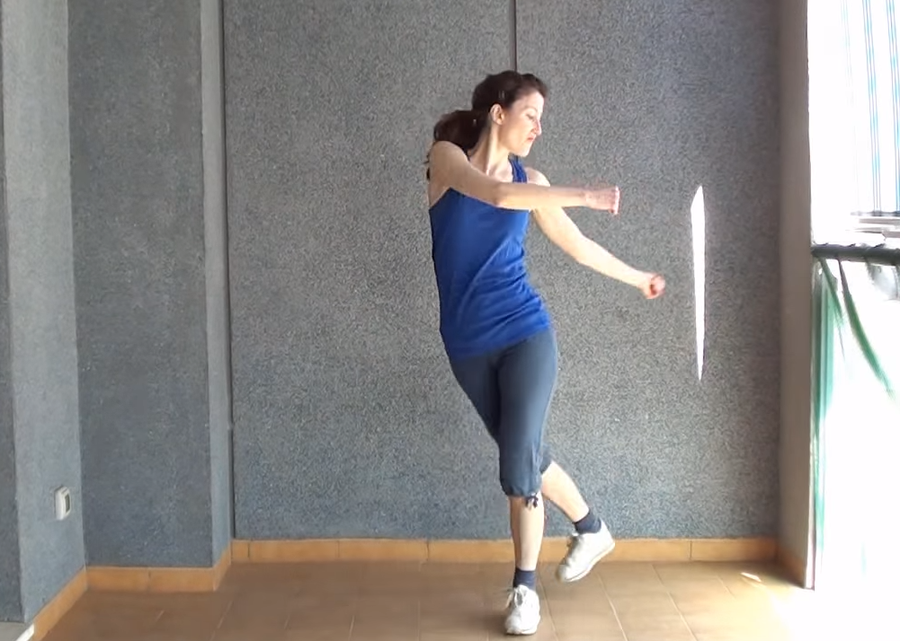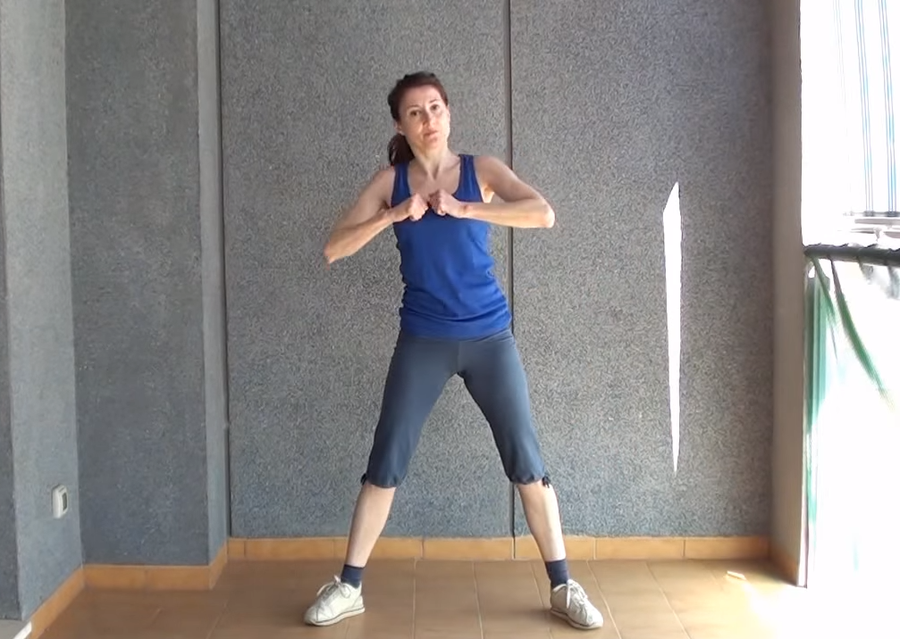 Volvemos al movimiento del ejercicio 4, pero en esta ocasión, a la vez que giramos hay que hacer el movimiento de dar un puñetazo en el aire. Trabajos cintura, pero también nuestros brazos. ¡2 en 1! Lo hacemos 10 veces a cada lado.