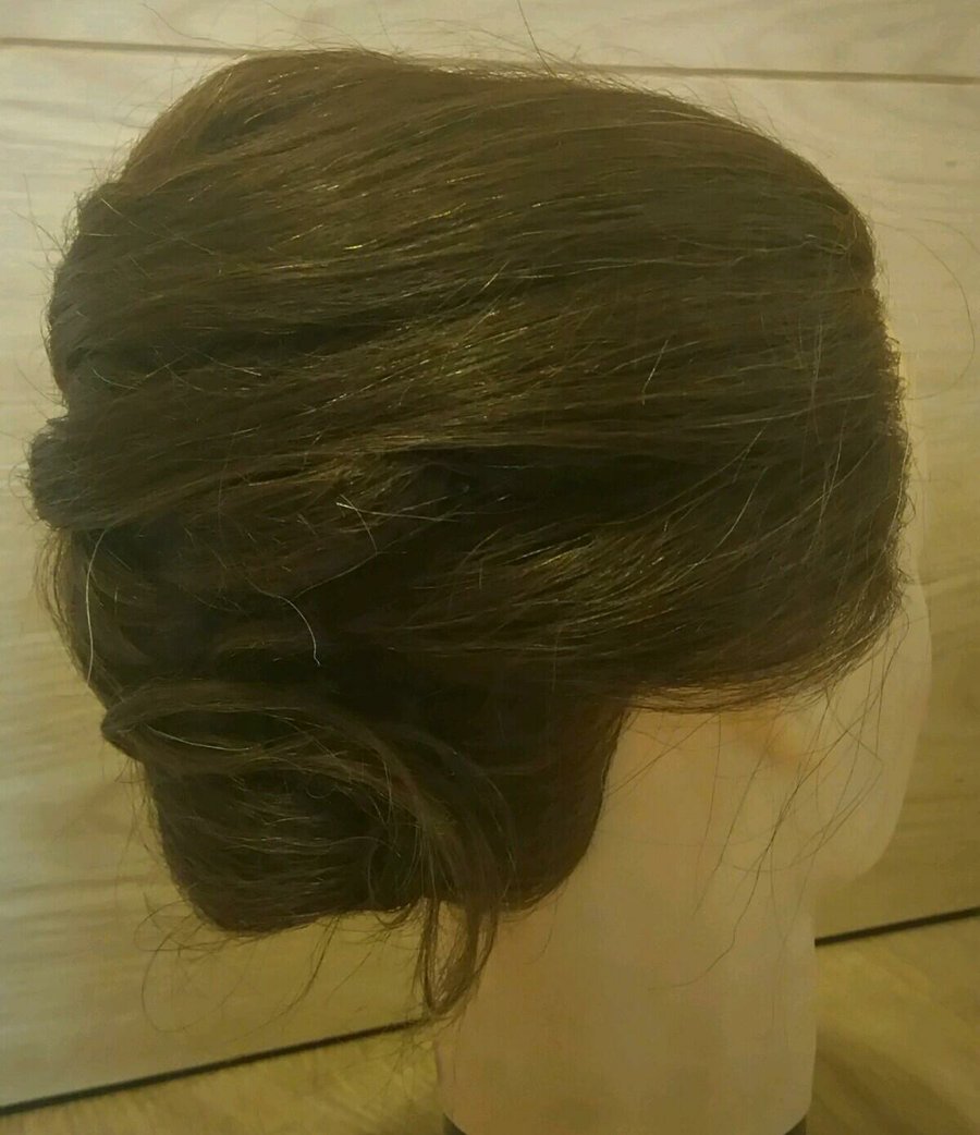 Se basa principalmente en ir cruzando mechones de derecha a izquierda y viceversa, e ir sujetando dichos mechones con horquillas intentando que no se vean.